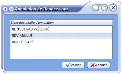 Vous avez la possibilité de modifier la Liste des motifs d'annulation.