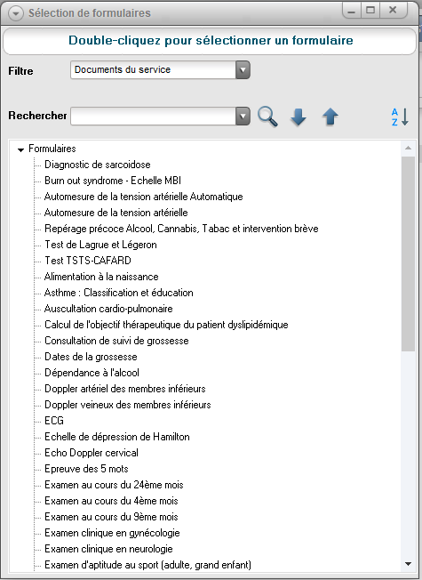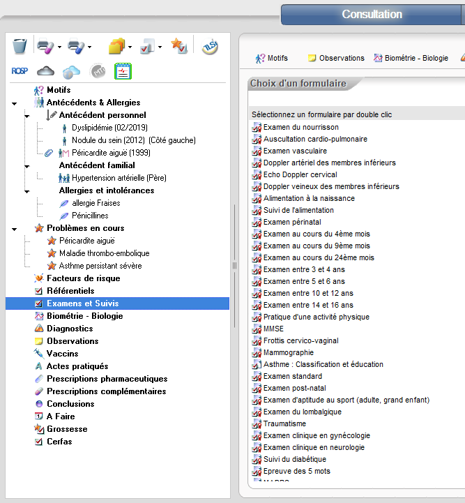 Il vous suffit de double-cliquer sur le formulaire que vous souhaitez utiliser dans votre consultation .