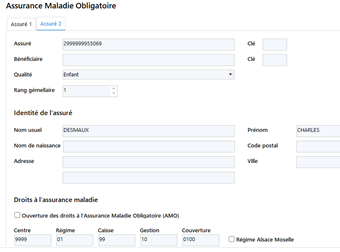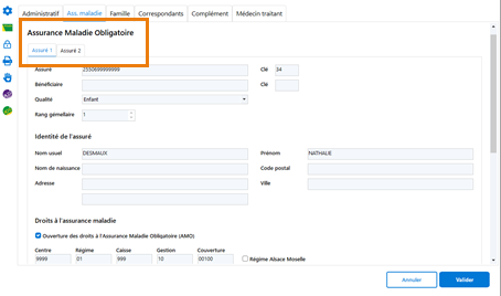 Afin d'éviter une perte d'informations, voire des doublons de dossiers patients, nous avons offert la possibilité de renseigner les deux assurés du patient, via l'onglet Assurance maladie, les sous-onglets Assuré 1 et Assuré 2.