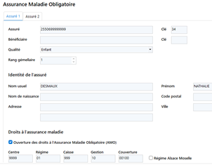 Si vous lisez la carte Vitale de votre patient, cet onglet est pré-rempli au niveau des informations Assurance Maladie Obligatoire.