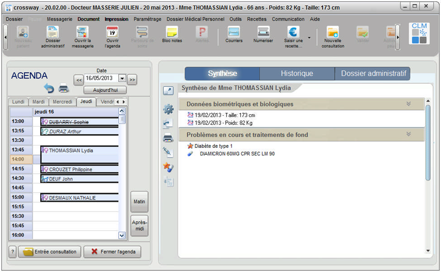 Double-cliquez sur le nom du patient pour lequel vous souhaitez saisir une consultation (il est également possible de cliquer sur les boutons Entrée consultation ou Nouvelle consultation).