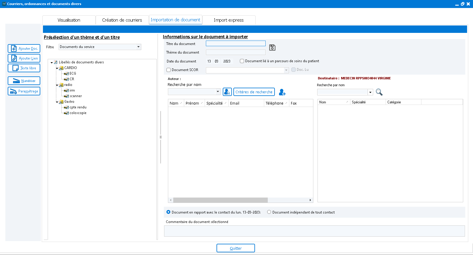 Filtre - Documents du Nom du Médecin : les libellés de documents créés dans ce filtre seront uniquement accessibles par le médecin.