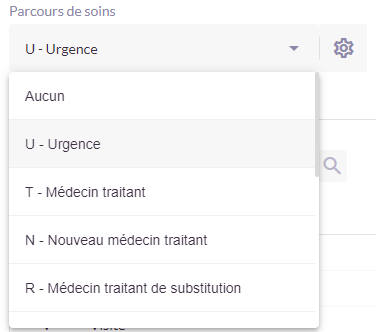 Sélectionnez le contexte de parcours de soins dans le menu déroulant.