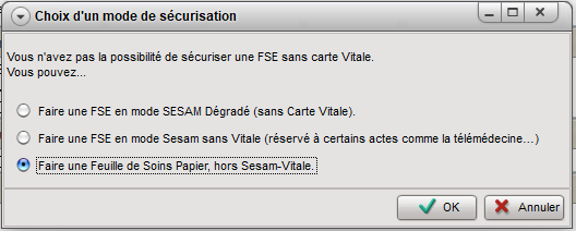 Cochez l'option Faire une Feuille de Soins Papier, hors Sesam-Vitale, puis cliquez sur .