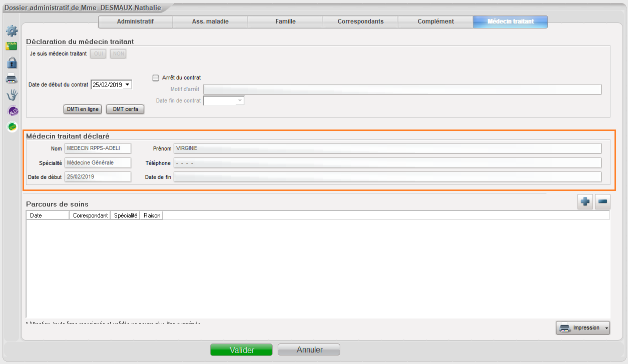 Le parcours de soins est renseigné.