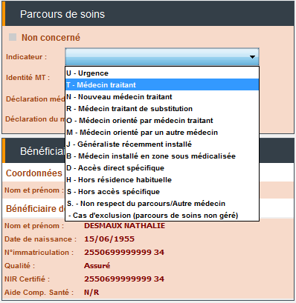 Si vous avez indiqué le nom du médecin traitant, dans l'onglet Médecin traitant du dossier administratif du patient, le contexte du parcours de soins sera renseigné automatiquement dans la feuille de soins.