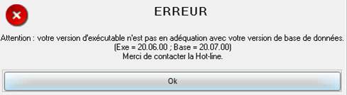 Validez le message d'erreur. Le logiciel lance une vérification de votre base. ![]() Si l'erreur persiste :