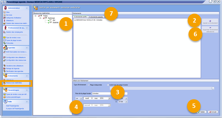 6. Le bouton Supprimer l'événement sélectionné permet de supprimer l'événement,