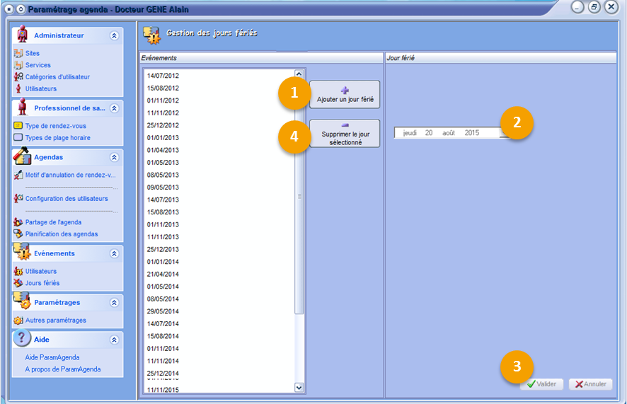4. Bouton permettant de supprimer le jour férié.