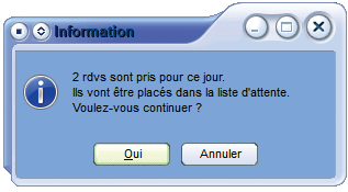 Si des rendez-vous ont déjà été planifiés à la date sélectionnée, le message suivant apparaît :