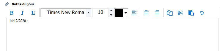 Vous pouvez mettre en forme la note du jour (mettre en gras, italique, souligné, etc), par un clic droit sur la note, puis en sélectionnant Barre d'outils.