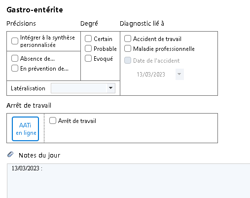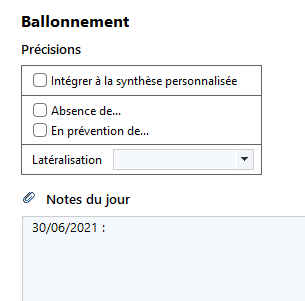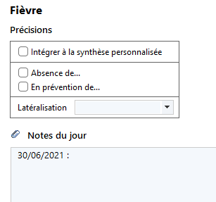 Les Notes du jour permettent d’apporter des précisions sur le terme choisi sous forme de texte libre.