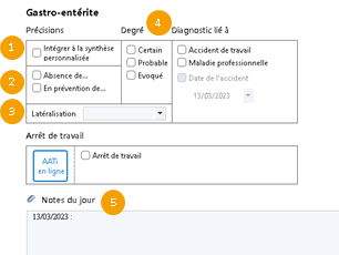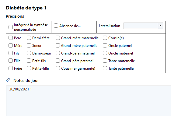 Intégrer à la synthèse personnalisée : permet de faire apparaître le terme choisi dans la synthèse personnalisée du patient. Dans l’onglet Synthèse, cliquez sur le bouton