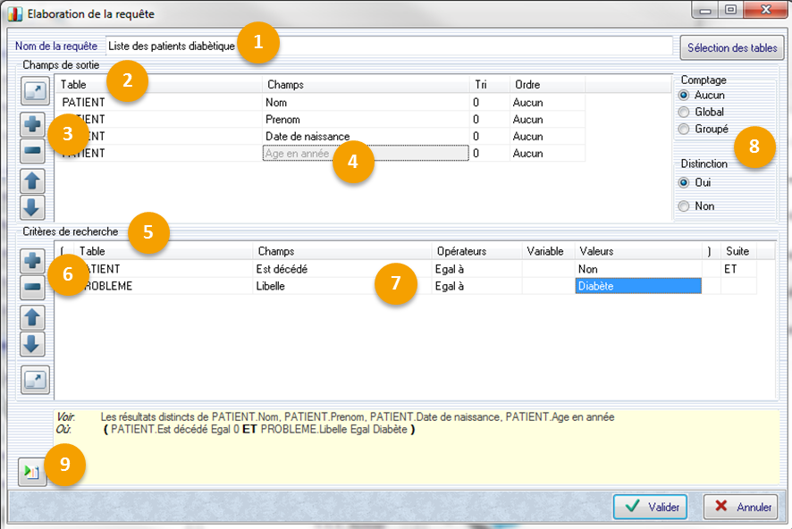 Table: Liste des tables disponibles. Le bouton Par exemple: PATIENT
