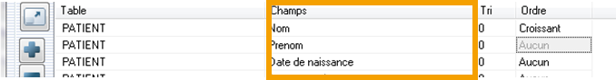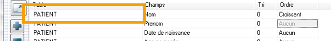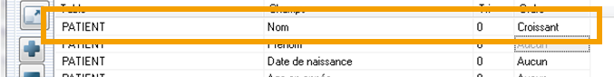 Ordre: Aucun, Croissant, Décroissant. Par exemple: Ordre croissant sur le nom des patients.