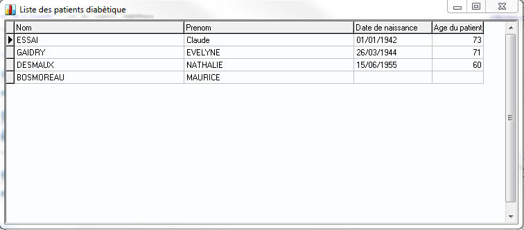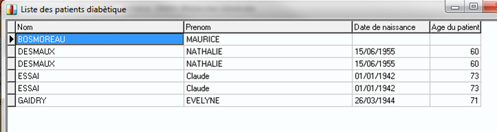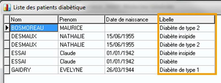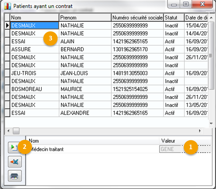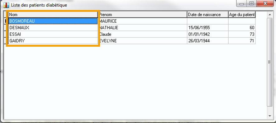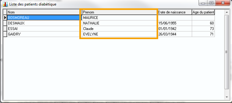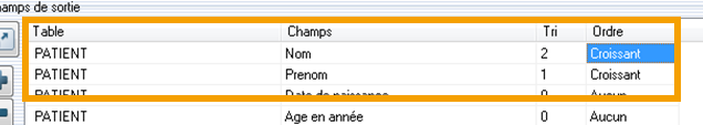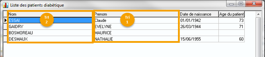 Tri: 1, 2 ,3 ,... Par exemple: un premier tri sur le prénom du patient, puis un deuxième tri sur le nom.