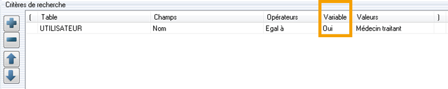 Liste Critères de recherche, qui permet de sélectionner les champs pour la requête,