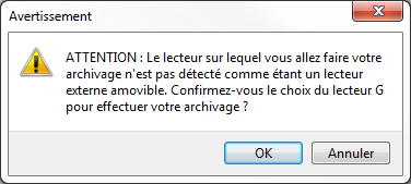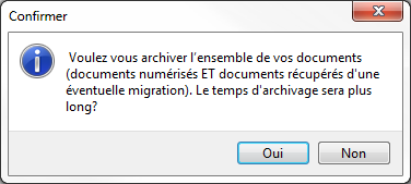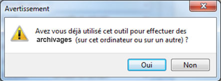 La première fois que vous souhaitez effectuer un archivage, le message suivant apparaît, cliquez sur .