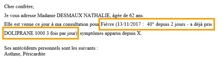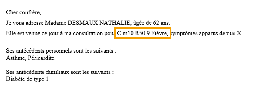 Cette option vous permet d'insérer, par exemple, le motif Fièvre avec son code CIM10, CISP ou AMM.