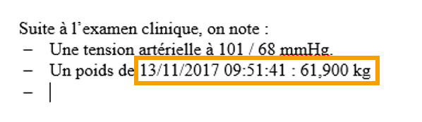 Cette option vous permet d'insérer les dates des données biométriques saisies en cours de consultation, comme par exemple, la date et l'heure de saisie du poids de votre patient.
