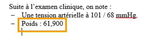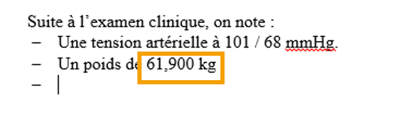 Cette option vous permet d'insérer le libellé du signet choisi, comme par exemple, le libellé Poids pour votre patient.