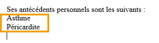 Cette option vous permet un retour à la ligne dans le signet. Par exemple, vous souhaitez avoir la liste des antécédents les uns en dessous des autres.