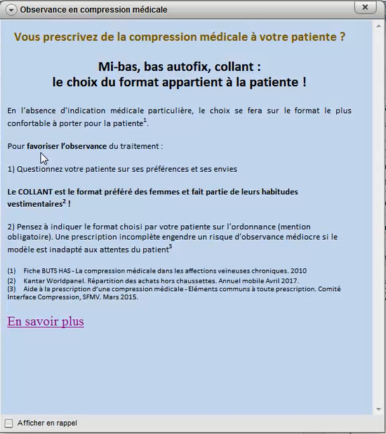La coche vous permet d'afficher une pop-up de rappel lors des prochaines consultations.