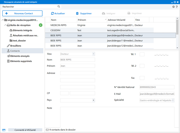 Un nouveau dossier Contacts vous permet de gérer votre carnet d'adresse (consulter, ajouter, supprimer des correspondants).