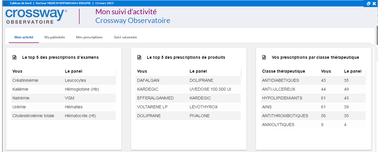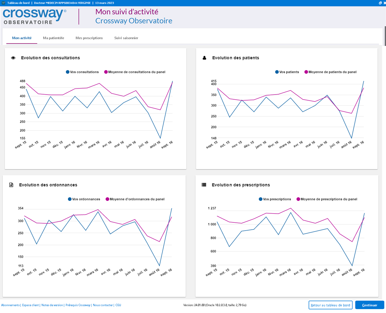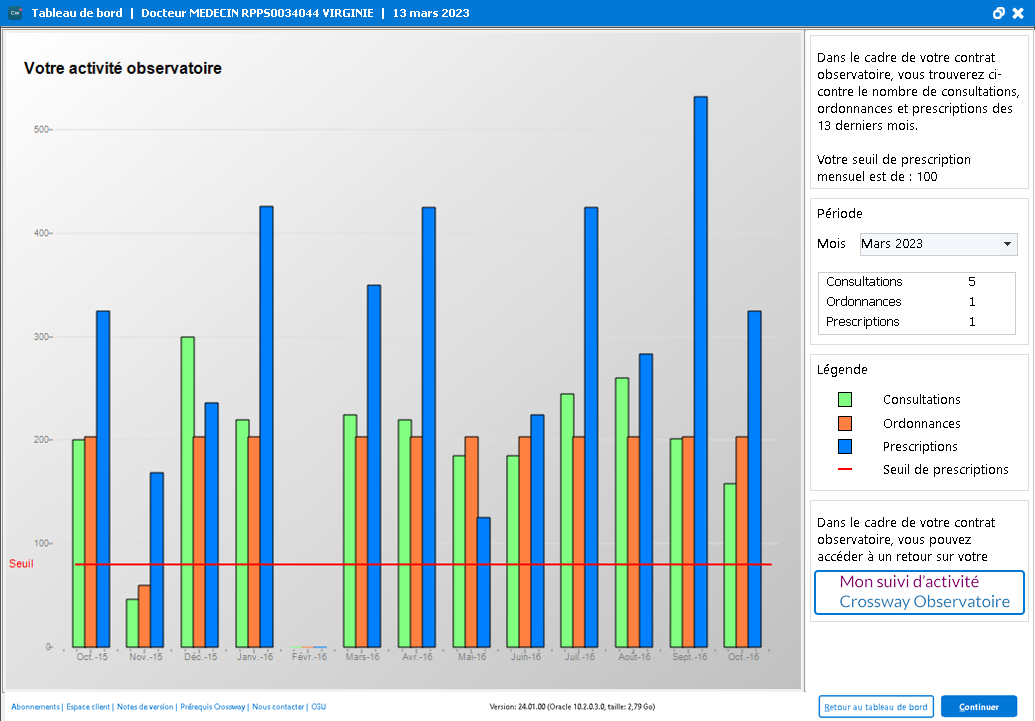 Votre activité est accessible sur 13 mois, en fonction du nombre de consultations, de patients, d'ordonnances et de prescriptions.