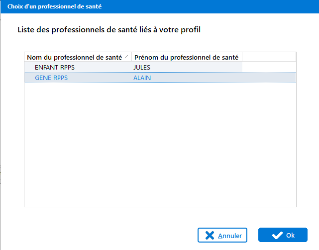 Si le médecin remplaçant est déclaré comme étant remplaçant de plusieurs titulaires sur une même période, Crossway propose de sélectionner le nom du titulaire à l'ouverture du logiciel :