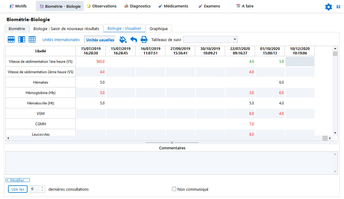 En cours de consultation, cliquez sur Biométrie - Biologie.