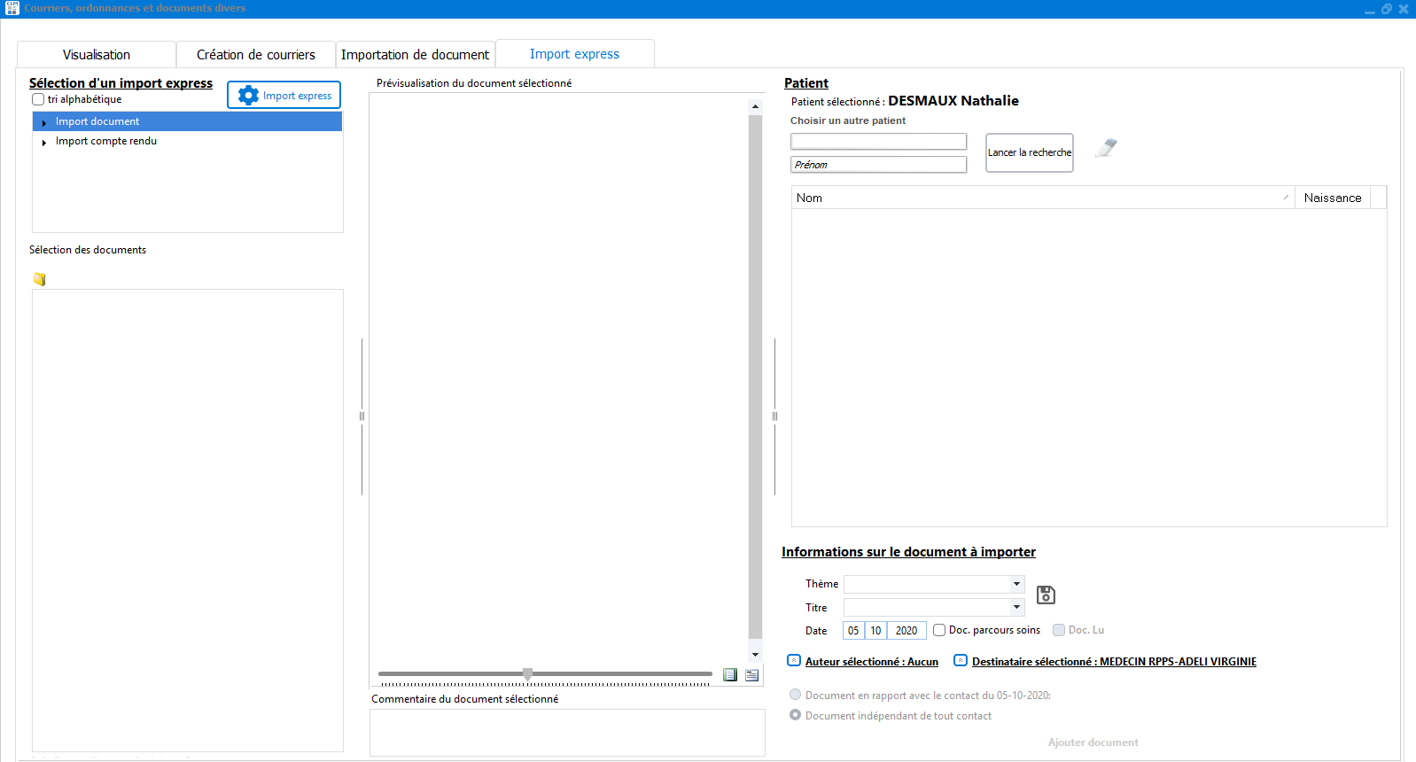 ordonnances et documents divers, sous l'onglet Sélection d'un import Express.
