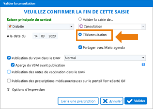 Cochez Téléconsultation. Et cliquez sur Enregistrer et Valider.