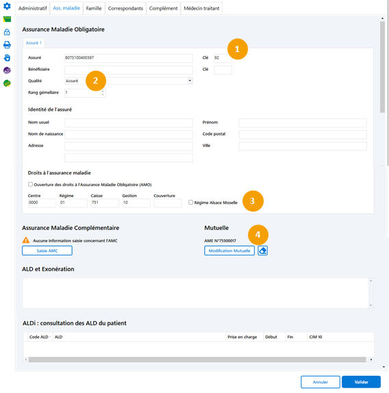 Renseignez les informations nécessaires dans le dossier administratif du patient.
