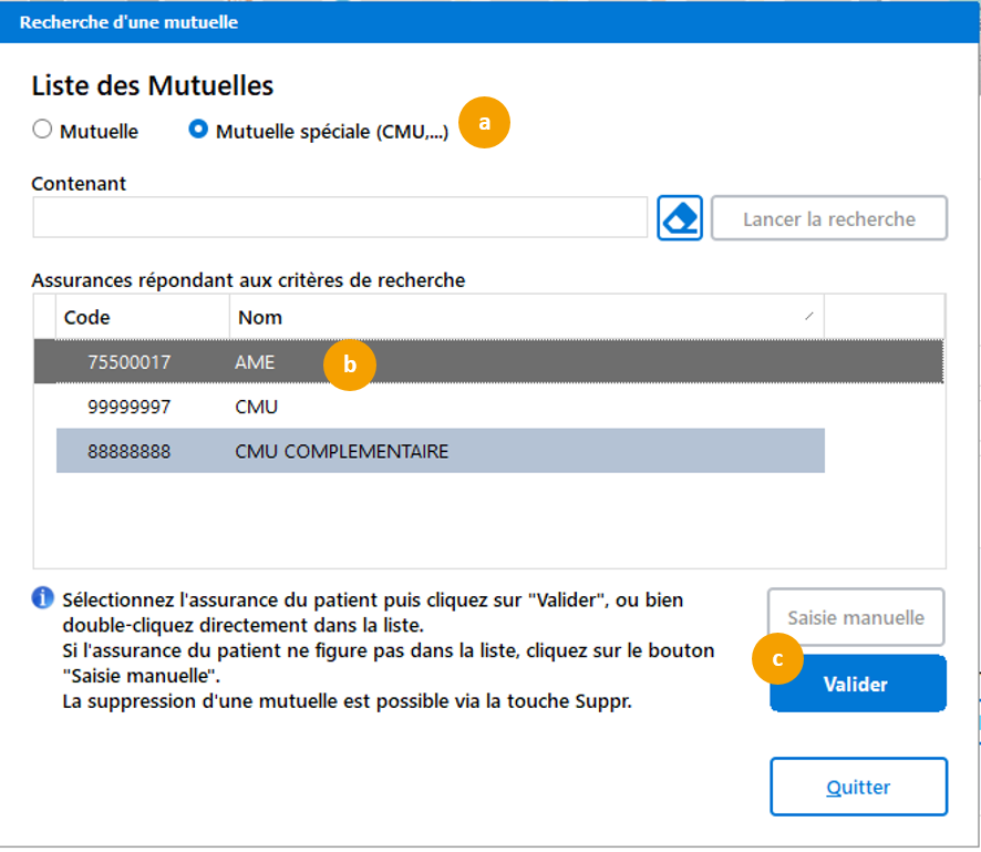 Sélectionnez la mutuelle AME,