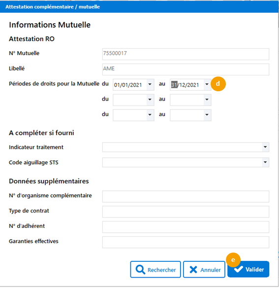 Saisissez la période des droits.