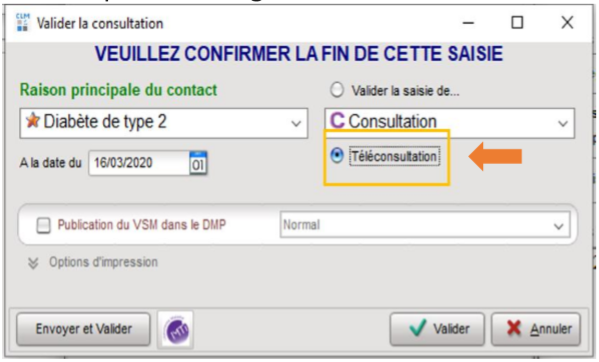 Cochez Téléconsultation. Et cliquez sur Enregistrer et Valider.
