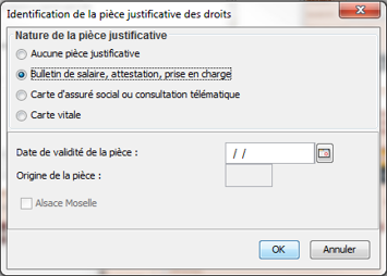 Cochez la pièce justificative que vous a montrée le patient, puis validez,