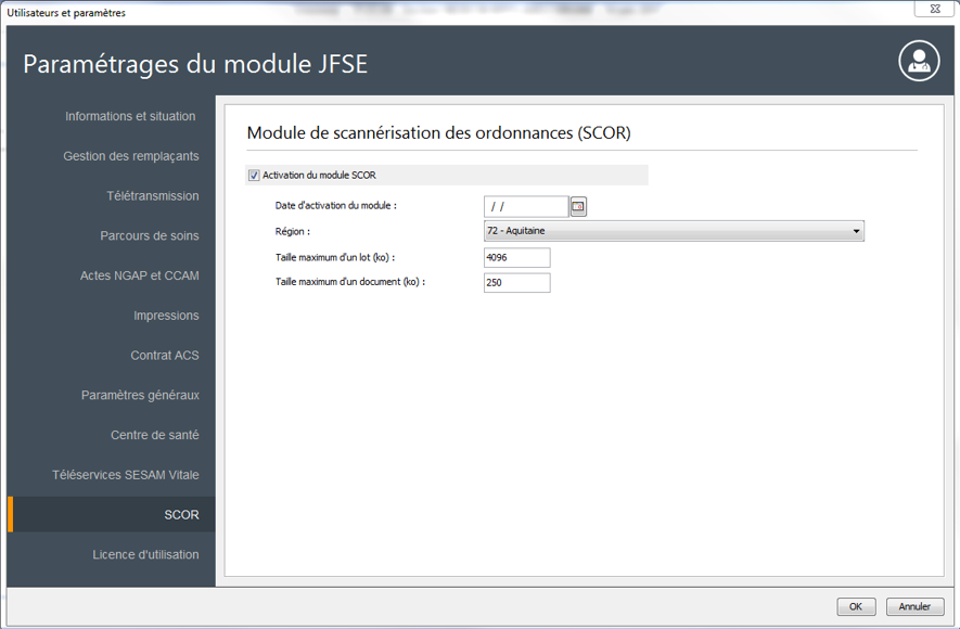 Dans le menu → → , cliquez sur la rubrique SCOR,