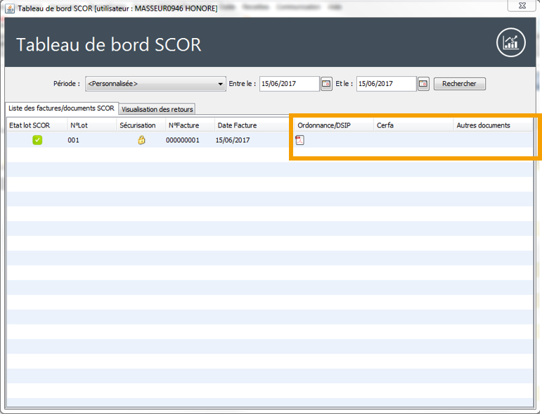 Il est possible de vérifier la présence de pièces justificatives pour ses factures, à l'aide d'un tableau de bord dédié aux documents SCOR.