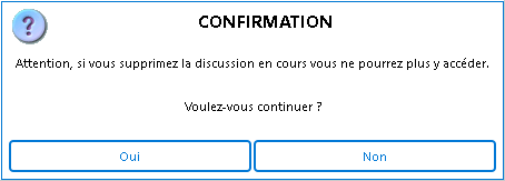 La discussion disparaît de votre écran de messagerie instantanée, vous ne pourrez plus y prendre part. La discussion peut continuer entre les autres participants, tant que tous les participants n'ont pas supprimé la discussion de leur poste.