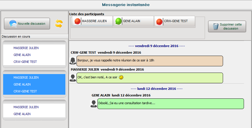 Si les participants sont connectés, ils seront instantanément alertés de l'arrivée de votre message.