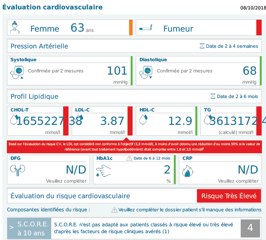 Évaluation du risque Cardiovasculaire. Cette donnée est reprise du module RCV depuis → .
