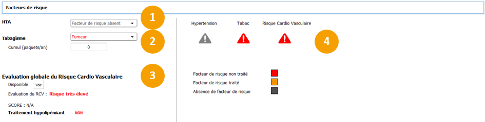traité (en orange) : si votre patient a de l'hypertension et qu'il est traité sur les 6 derniers mois.