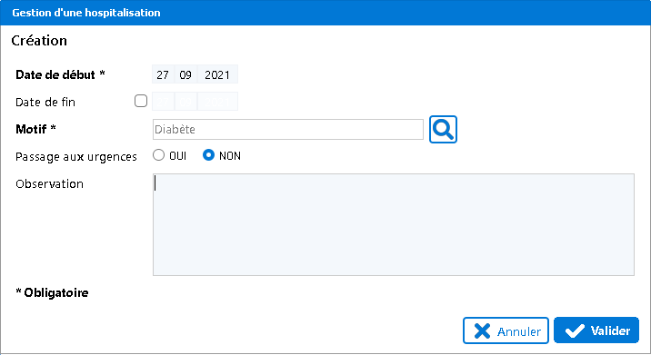 saisir de nouvelles hospitalisations, à l'aide de ce bouton
