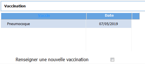 La case à cocher Renseigner une nouvelle vaccination, vous permet de saisir une nouvelle vaccination à la validation du formulaire Suivi du diabétique.