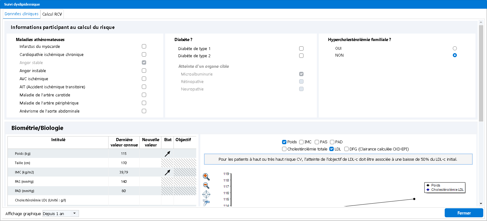 de visualiser ou de cocher les informations participant au calcul du risque (maladies athéromateuses, diabète, hypercholestérolémie),