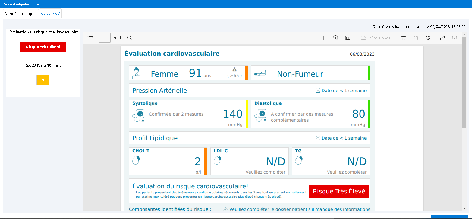 visualiser la précédente évaluation du risque cardiovasculaire,
