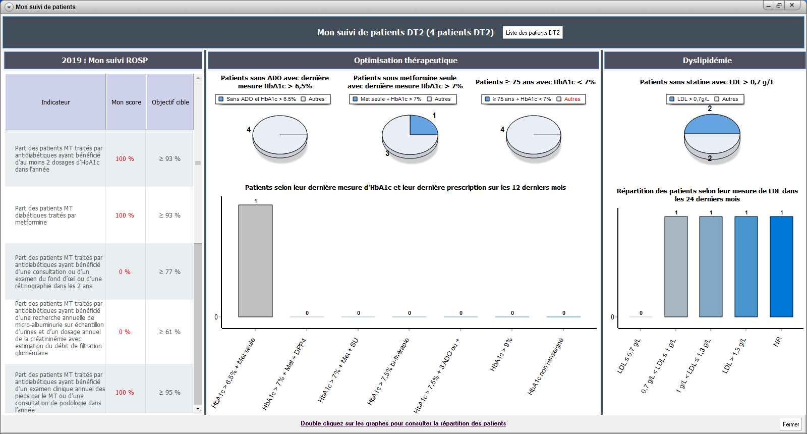 Le tableau d'analyse populationnelle inclut les indicateurs ROSP traitant du diabète. Ainsi, avant d’afficher ce tableau de bord il est nécessaire de les mettre à jour.
