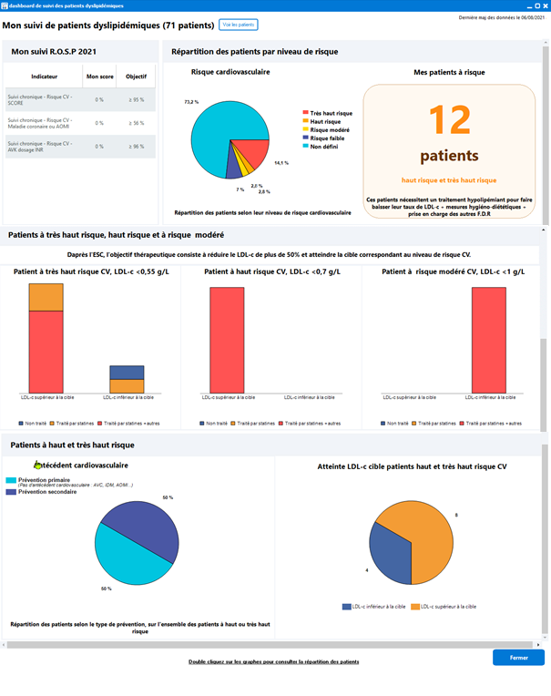 Le tableau d'analyse populationnelle inclut les indicateurs ROSP traitant du risque cardiovasculaire. Ainsi, avant d’afficher ce tableau de bord il est nécessaire de les mettre à jour.